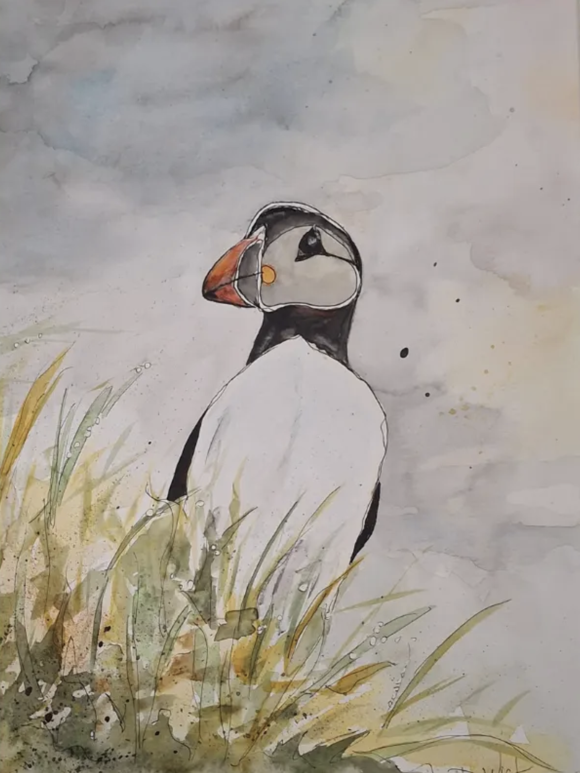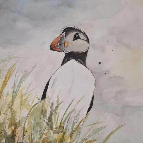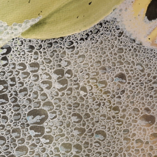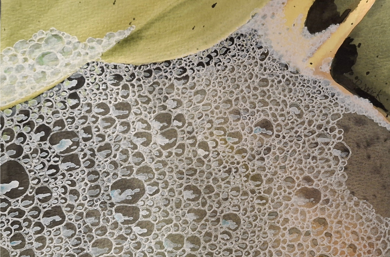 “I wonder if I could figure out how to paint that,” she said. Wick explains her method of putting masking fluid on paper then letting it dry. “Then you paint your blurry background, let that dry, take off the masking fluid and you paint the reflections on all of the water drops.” Her method came from trial and error; she came up with it herself.